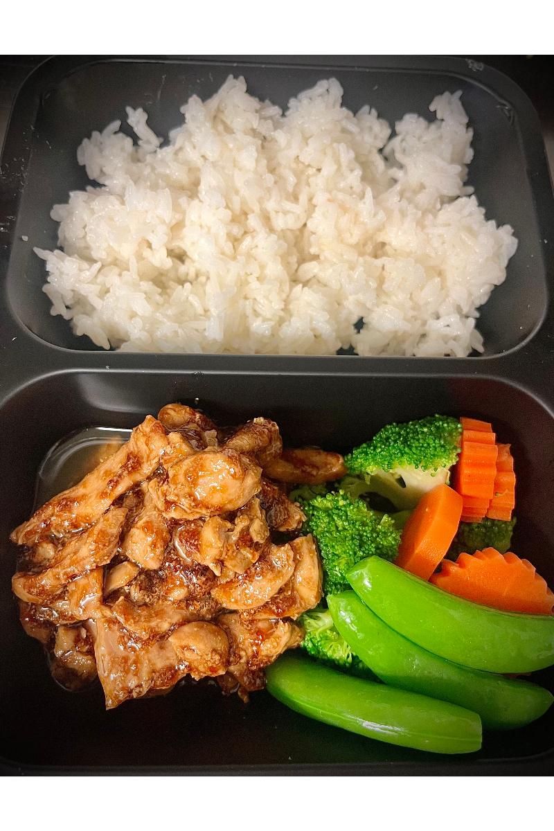 Ingredienser: Ris, Kylling, Brokkoli, Gulrot, Oystersaus, Hvitløk, Olje.